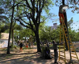 Reacondicionaron la plaza 12 de Octubre colocando nueva luminaria y plantando árboles