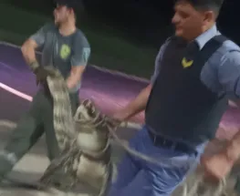 Sáenz Peña. Rescatan un yacaré de dos metros que se encontraba en un depósito de una estación de servicio