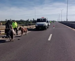 El hecho ocurrió sobre el paso a nivel de la avenida Sarmiento. Los animales fueron secuestrados por personal rural tras el aviso de la División Patrulla Vial.