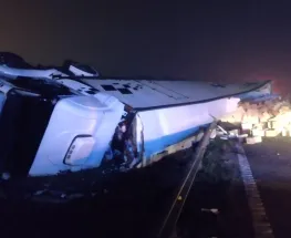 Un camión volcó en la Autopista Panamericana y una multitud de personas saquearon la mercadería