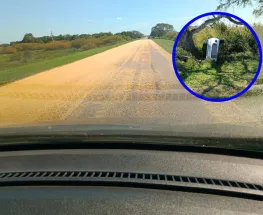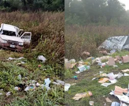El siniestro se provocó por la apertura de una compuerta del camión que arrojó una gran parte de maíz sobre la calle, haciendo que el automóvil pierda el control.