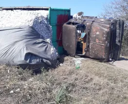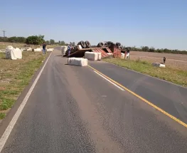 Viajaba a Las Garcitas, su camión tuvo una falla mecánica y volcó en plena ruta