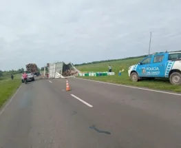 Un camión que llevaba 20 toneladas de tabaco perdió el control y despistó sobre Ruta N° 89