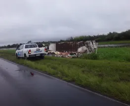 Camión y camioneta volcaron producto del fuerte temporal en Corrientes