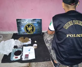En el operativo, el personal policial encontró un total de 34 gramos de cocaína y elementos utilizados para el fraccionamiento de las dosis.