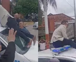 Papelón: un concejal quedó detenido por disturbios y subirse al techo de un patrullero