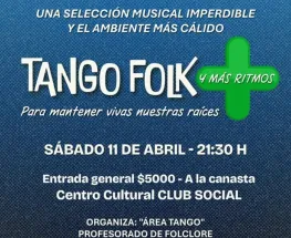 Ciudad termal. Tango Folk Más: la propuesta de este sábado en el Club SocialLa iniciativa es organizada por el área de profesorado de Tango y Folclore de la Casa de Cultura de Sáenz Peña.Diario TAG - via ModLayer