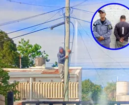 El mismo estaba trepado a un poste de luz en la calle Ayacucho al 4900 por la tarde del jueves. Al ser descubierto se dio a la fuga pero fue interceptado por la Policía.