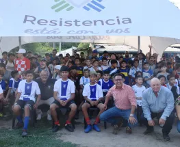 El intendente de Resistencia estuvo en Villa Don Alberto, donde entregó material para que niños y adolescentes realicen sus prácticas deportivas en el lugar.