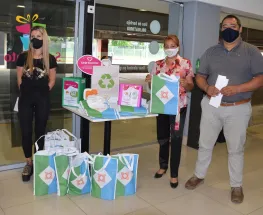 El Municipio junto a fundaciones, entregaron bolsas reutilizables y kits sanitizantes en el Shopping