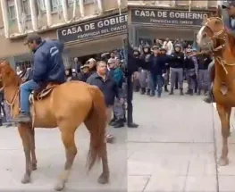 Tensión en Casa de Gobierno: se manifestaban a caballo y uno de ellos arremetió contra la Policía