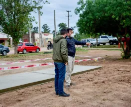 Gustavo Martínez recorrió las obras que se ejecutan en la plazoleta del barrio Los Teros