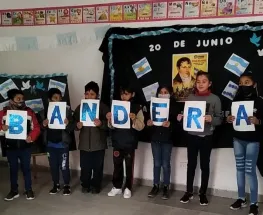 Los niños de los comedores integrales expusieron sus trabajos en alusión al Día de la Bandera