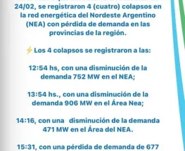 SECHEEP informó que durante la siesta de este jueves se dieron 4 colapsos energéticos: afectó al NEA