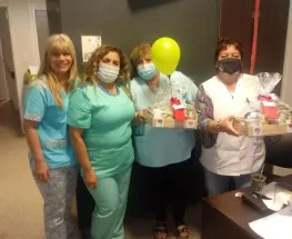 Las policías fueron agasajadas con flores amarillas y una tarjeta deseando "Feliz Primavera".
