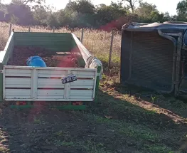 San Bernardo. Por las inclemencias del tiempo un camión volcó su acoplado con verduras sobre Ruta 95
