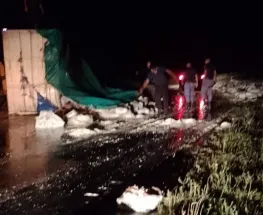Un camión que llevaba alimentos volcó y vecinos de José León Suárez se llevaron la carga