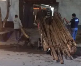 Denunció que un carro llevaba 42 postes de madera y la policía los dejó seguir circulando