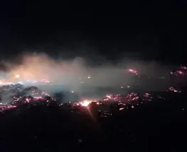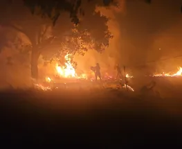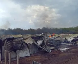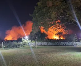 El fuego se desató en el predio donde funcionaba la ex empresa San Roque. Bomberos y policías trabajaron para controlar las llamas, que provocaron importantes daños materiales.