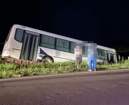 Anoche. Un colectivo despistó en la Ruta 16 y terminó en una alcantarilla
