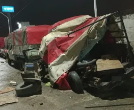Video: chocaron dos camiones de frente y uno de ellos se prendió fuego