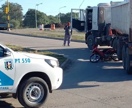 El conductor de la motocicleta fue derivado de urgencia hacia el Hospital 4 de Junio. Intervino el personal de la División Criminalística.