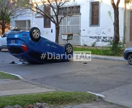 Pudo ser una tragedia: un automóvil chocó contra otro que estaba estacionado y volcó