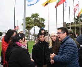 El acto se inició con el izamiento de las banderas de los países que representan a los escultores visitantes, con el acompañamiento musical de las bandas de la Policía del Chaco y del Ejército Argentino.