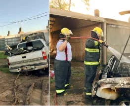 Efectivos de la División Bomberos sofocaron el incendio luego de que un camión de recolección de basura ayudara a sacar la camioneta hacia la vía pública.