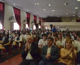 "Demostré que se pueden hacer grandes obras sin dinero del Estado con la participación y solidaridad de los ciudadanos", acentuó el candidato de La Libertad Avanza desde el Teatro del Colegio Don Bosco.