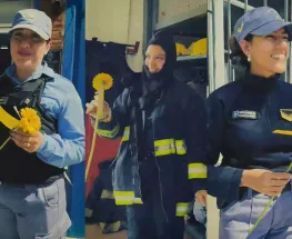 Las policías fueron agasajadas con flores amarillas y una tarjeta deseando "Feliz Primavera".