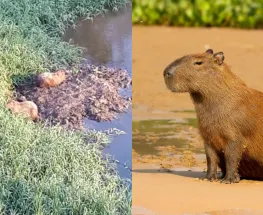 Apareció una familia de carpinchos rondando la zona del Río Negro y Av. Sarmiento