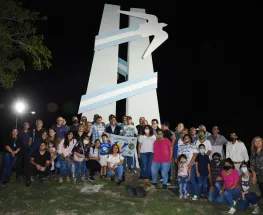 Iluminaron el monumento a los Caídos en la Guerra de Malvinas de Av. Sarmiento