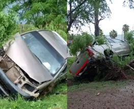 Viajaban por un camino rural, perdieron el control de la camioneta y se terminaron accidentando