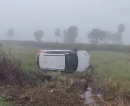 En medio de la intensa niebla, el conductor perdió el control del rodado y terminó a 20 metros de la ruta.