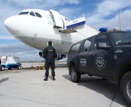 El vocero presidencial, Manuel Adorni, junto a Federico Sturzenegger, Patricia Bullrich y Franco Mogetta, anunció que las fuerzas de seguridad podrán intervenir en caso de secuestro de pasajeros.