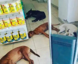 Una farmacia de Santiago del Estero le dio refugio para el calor a los perros callejeros