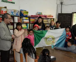 La charla fue para que los alumnos de dicho establecimiento conozcan un poco más sobre la ciudad y, una vez finalizada, reciben una bandera como obsequio.