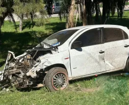 El conductor salió ileso. Un auto perdió una rueda y chocó contra una columna y un árbol en la Ruta 95