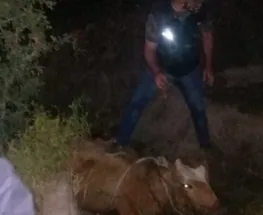 Una yegua cayó a una cuneta, quedó atrapada y un grupo de policías la rescató