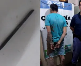 El delincuente asaltó a un ciudadano con una barra de hierro con punta.