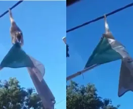 De la inseguridad nadie se salva: un mono colgado desde cable de luz intentó robar una bandera