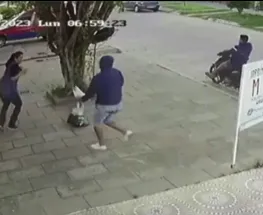 El momento en el que la joven en abordada por dos hombres que circulaban en una moto fue registrado por las cámaras de seguridad.