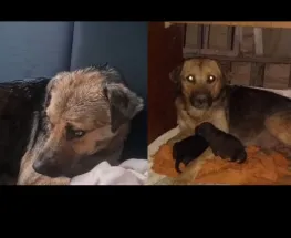 VIDEO. Rescataron en plena lluvia a una perrita que tuvo sus bebés en una zanja y podían morir ahogados