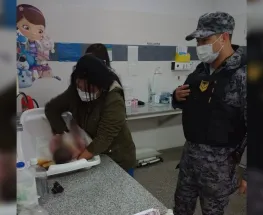 Una mujer salió corriendo con su hijo descompensando en brazos y un grupo de Policías lo salvó