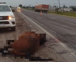 El animal tendido en el asfalto sin vida, mientras que el conductor resultó ileso.