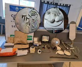 Al requisar el lugar, hallaron una pistola calibre 22mm., un revolver calibre 22mm, 47 cartuchos de distintos calibres, más de 100 gramos de cocaína, entre otros elementos.