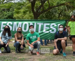 Realizan una intervención informativa y artística en la Plaza 25 de Mayo contra los desmontes