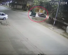 Vecinos aportaron registros de cámaras de seguridad, donde se ve un auto transportando un contenedor enganchado a la parte trasera.
