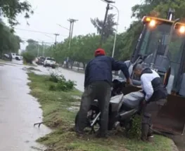 Un motociclista cayó en un pozo no señalizado en una calle inundada